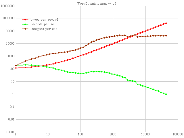 All results are plotted to the same scale with this custom program written in open source Squeak Smalltalk. I wrote a new program because I couldn't find one that could read tabbed text, write gifs, and do log plots all at the same time. I think my charts look much better than excel's. I hope you agree. If you look closely you will notice that the lines are transparent and anti-aliased. This let me use wider lines which look better in thumbnail. .