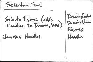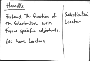 The SelectionTool can touch and drag both Figures and Handles. Tools and Handles both manipulate Figures. That makes Handles a wonderful little unit of extension that looks like a Figure to a Tool and like a Tool to a Figure.