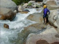 This section is a logical extension to either the Park Boundary run below or the Ash Mountain run above. If you run the Ash Mountain section including the Iron Lung Gorge then you will undoubtably include the Extended Boundary as part of the run. The Extended Boundary is more difficult than the Park Boundary Run and has a narrower window. While the lowest boatable flow of this section is the same as the Park Boundary section, it's upper boatable level will be less unless you are willing to run some more difficult water. The Extended Boundary is seldom run becuase of it's difficulty and more likely due to lack of awareness of what it contains. Hopefully the publication of this log will increase the boater count on this section in the future.
