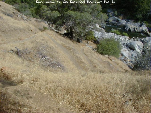 Take out here or continue downstream into the Park Boundary Run. The Southern California Edison Diversion Dam is 150 yards downstream. An easy trail gains 100 feet elevation on it's way up to the Indian Head Parking Area