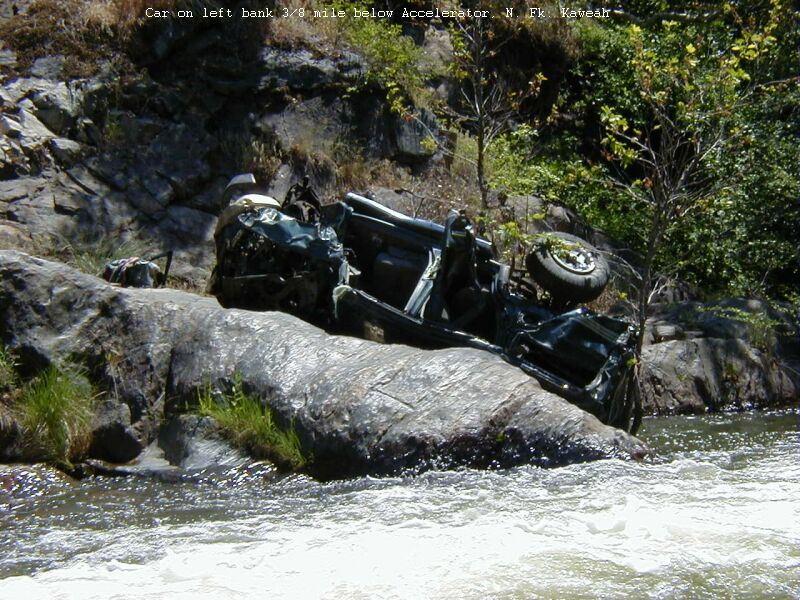 10-17-01 The Totaled Car in the North Fork 3/8 mile below Accelerator has been removed by the BLM.
