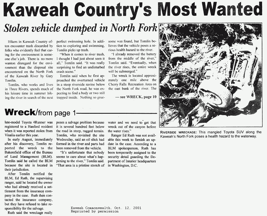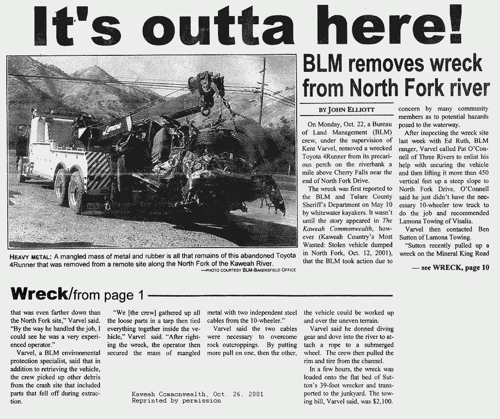 The Kaweah Commonwealth Article, Oct. 12, 2001 . created enough of an outcry that the BLM acted