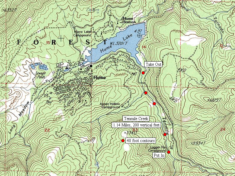 Yucca Creek and is accessed by Forest Service roads above Badger and a 30 minute hike to the river on a trail from the Cherry Flat area. The first 3 miles are very steep with one mile at 600+ feet/mile and the whitewater
