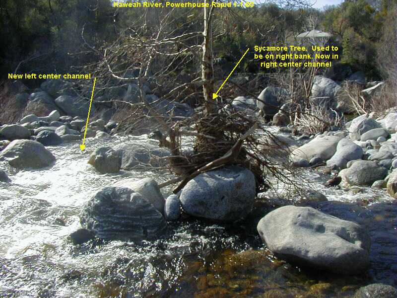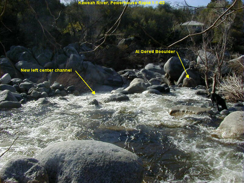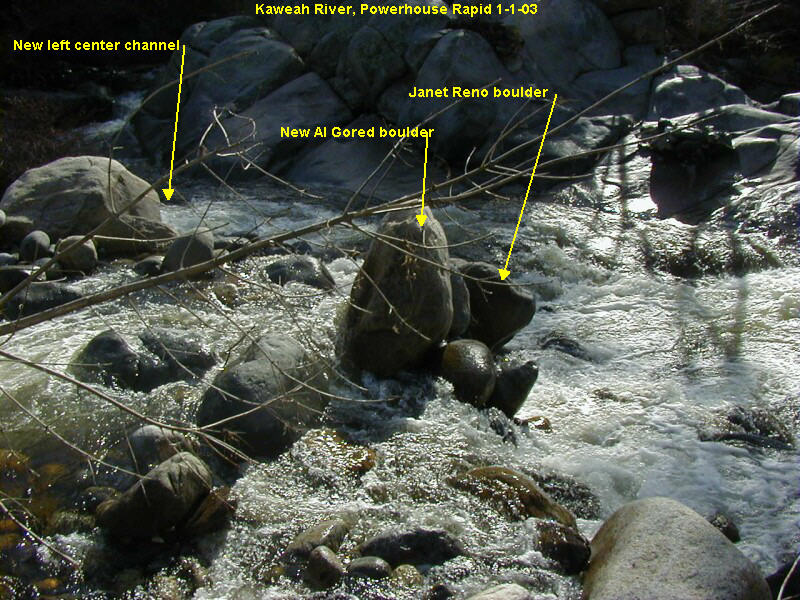 05-01-02 Old but good news. The Janet Reno Piton Rock in Powerhouse has moved downstream 15 feet to a safe and stable position nearly