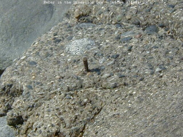 09-11-00 A 15 foot I-beam is wrapped around a large boulder just below the Chute. Prior to the flood of Jan. 1997
