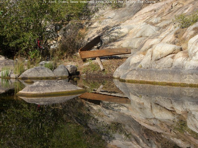 the I-beam was stuck in the mega boulders to the right of the main drop at The Chute. We now boat right over